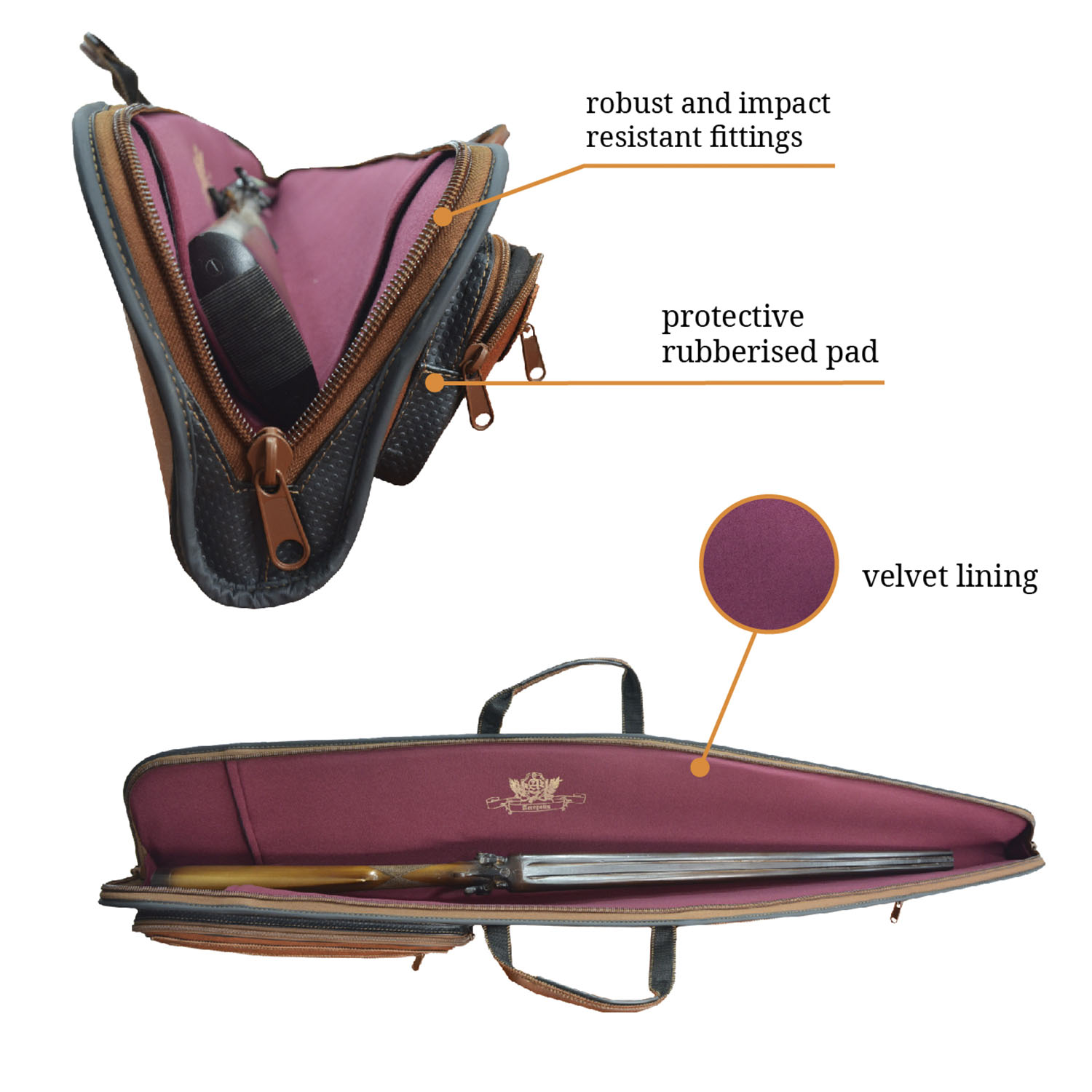 Futrālis ir polsterēts komfortablai lietošanai un transportēšanai, savukārt puscietā konstrukcija ar plastmasas karkasu efektīvi pasargā ieroci no triecieniem un mehāniskiem bojājumiem.