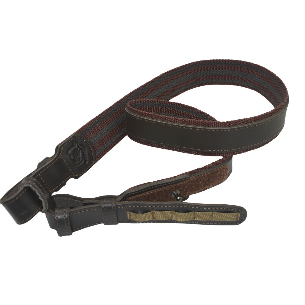 Siksna ir papildus pastiprināta ar ādas elementiem, kas uzlabo tās izturību un nodrošina drošu stiprinājumu pie ieroča.