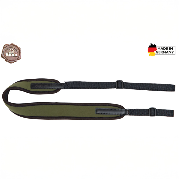 Neoprēna elastība (aptuveni 15%) nodrošina efektīvu triecienu absorbēšanu – ideāla izvēle ērtai un stabilai ieroča nēsāšanai. AKAH meistari ražošanas procesā rūpīgi kontrolē materiāla elastību, garantējot augstu kvalitāti un ilgmūžību. Ādas elementi padara siksnu klusu un neslīdošu, nodrošinot maksimālu komfortu medībās.